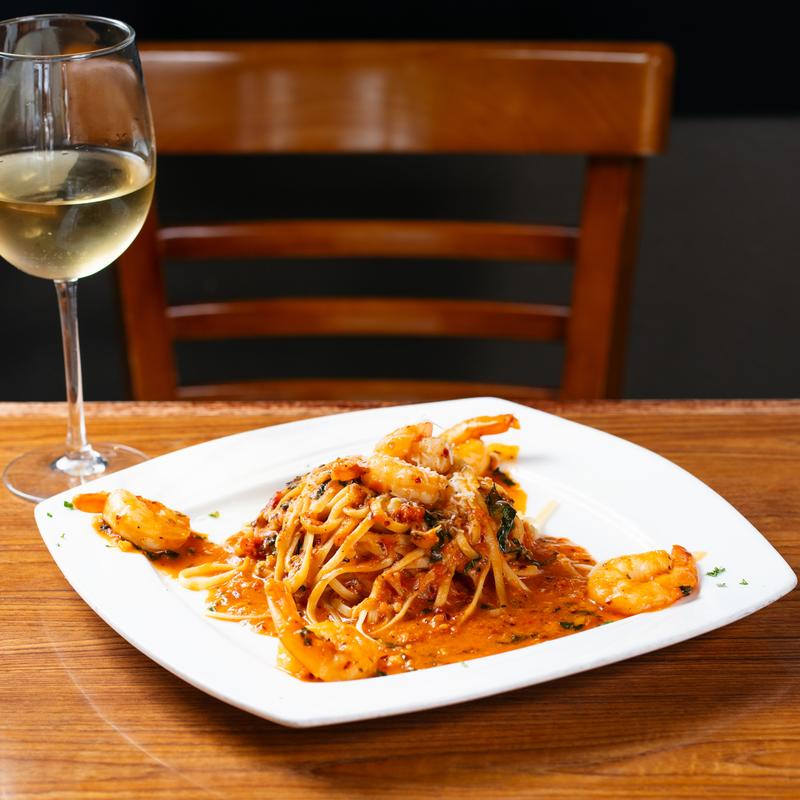 Sautéed Shrimp in a Spicy Fra Diavolo Sauce served over Fettuccini or Linguine Pasta