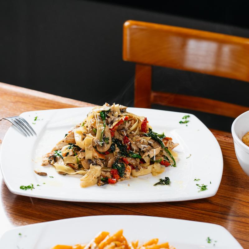 Chicken, Sun-Dried Tomatoes, Mushrooms, Artichokes, Fresh Basil, Spinach, Fresh Garlic, Served over Fettuccini or Linguine Pasta